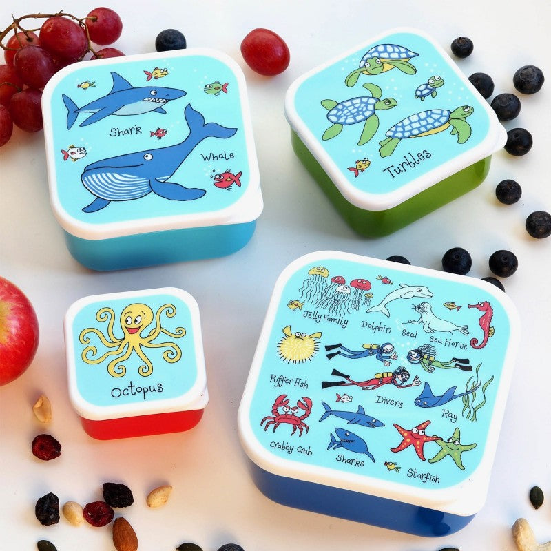 Set of 4 Ocean design square shaped nesting boxes perfect for healthy snacks on the go