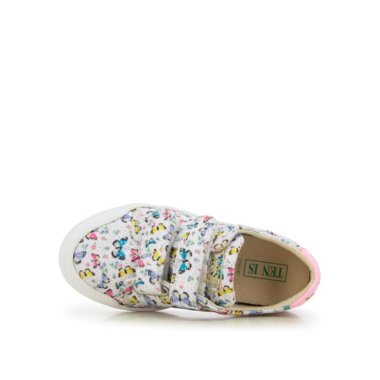 Ten V2 W Print is a sneaker for children, presented here in a canvas version with a butterfly drawing print. This shoe is designed from quality materials: light and flexible for the movement of the foot. The lining is in organic cotton and the sole in hypoallergenic microfiber, made from corn. It is easy to put on and take off thanks to its hook-and-loop straps.