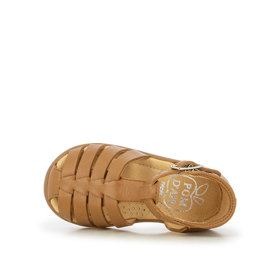 Stand Up strap is a first-step sandal presented here in a smooth camel leather version. The lining and the first are in microfibers made of recycled apple skin. Lightweight and equipped with a real rubber sole, a reinforcement placed at the back of the shoe provides support and optimal stability, while offering flexibility to the front of the foot.